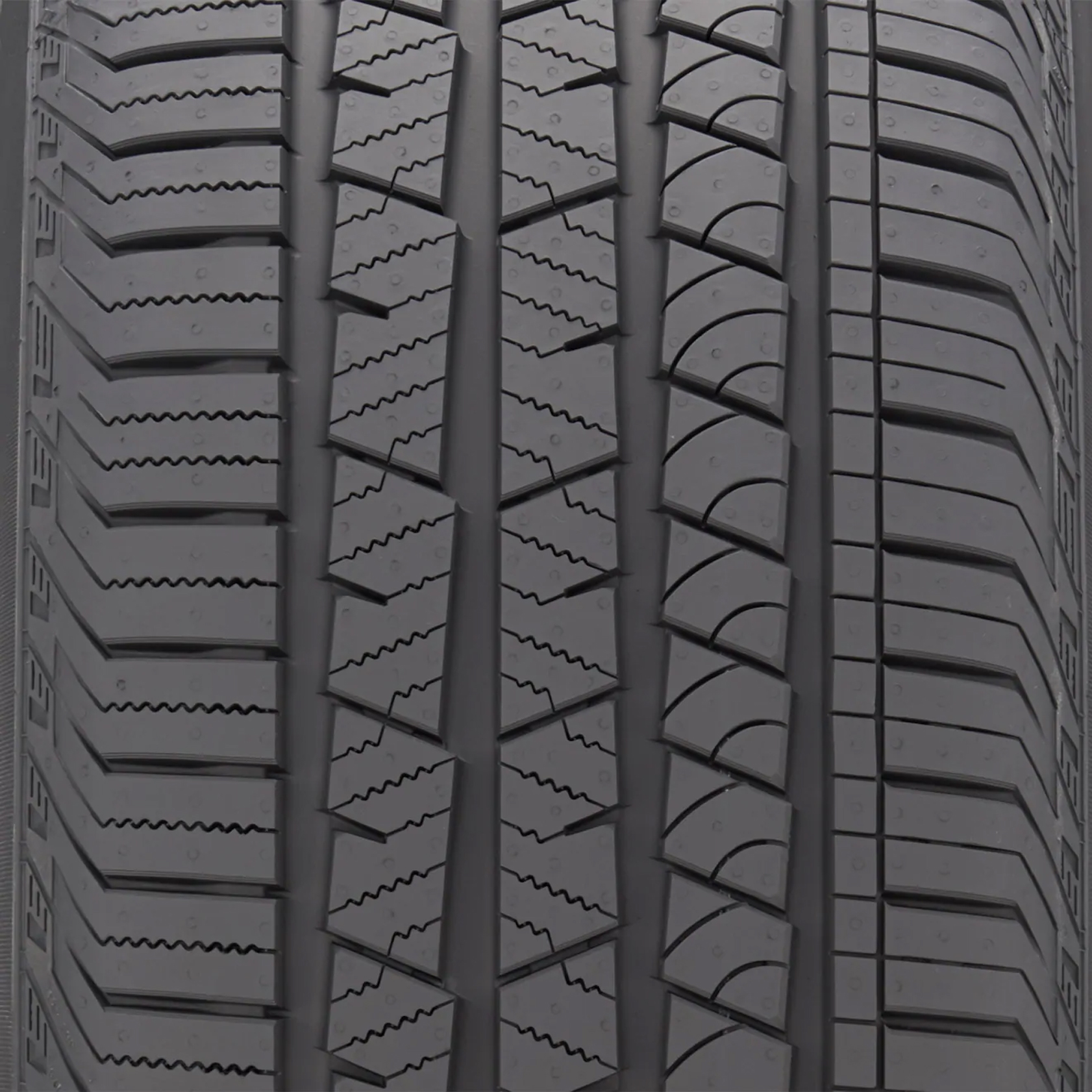 ’’Le pneu d’été/4 saisons ContiCross Contact LX Sport est destiné aux VUS moyens aux puissants et costauds 4X4. Il vous offre une exceptionnelle maniabilité pour une utilisation sur, et hors route, des performances de freinage remarquables sur route sèche ou mouillée, ainsi qu’une efficace évacuation de l’eau et une éjection rapide des pierres. Spécialement conçu pour réduire le bruit et la résistance au roulement, tout en améliorant le confort de conduite et la traction toutes saisons, même par neige légère. Le composé de bande de roulement asymétrique à base de silice Tri-net de Continental offre une maniabilité et une traction toutes saisons. Son épaulement extérieur cranté soutenu par une nervure circonférentielle continue favorise la réponse de la direction sur la route, la stabilité en ligne droite et le confort de conduite. Vous obtiendrez une distance de freinage réduite sur chaussée mouillée et une traction améliorée sur, et hors route. Le contour du pneu offre une optimisation de la résistance au roulement. 3 rangées de pavés centraux indépendants dotés de lamelles imbriquées améliorent la traction dans la neige légère, tandis que 4 larges rainures circonférentielles présentent un profil effilé afin d’améliorer la résistance à l’aquaplanage et de réduire les risques d’endommagement des pneus par les pierres prises dans la sculpture.’’