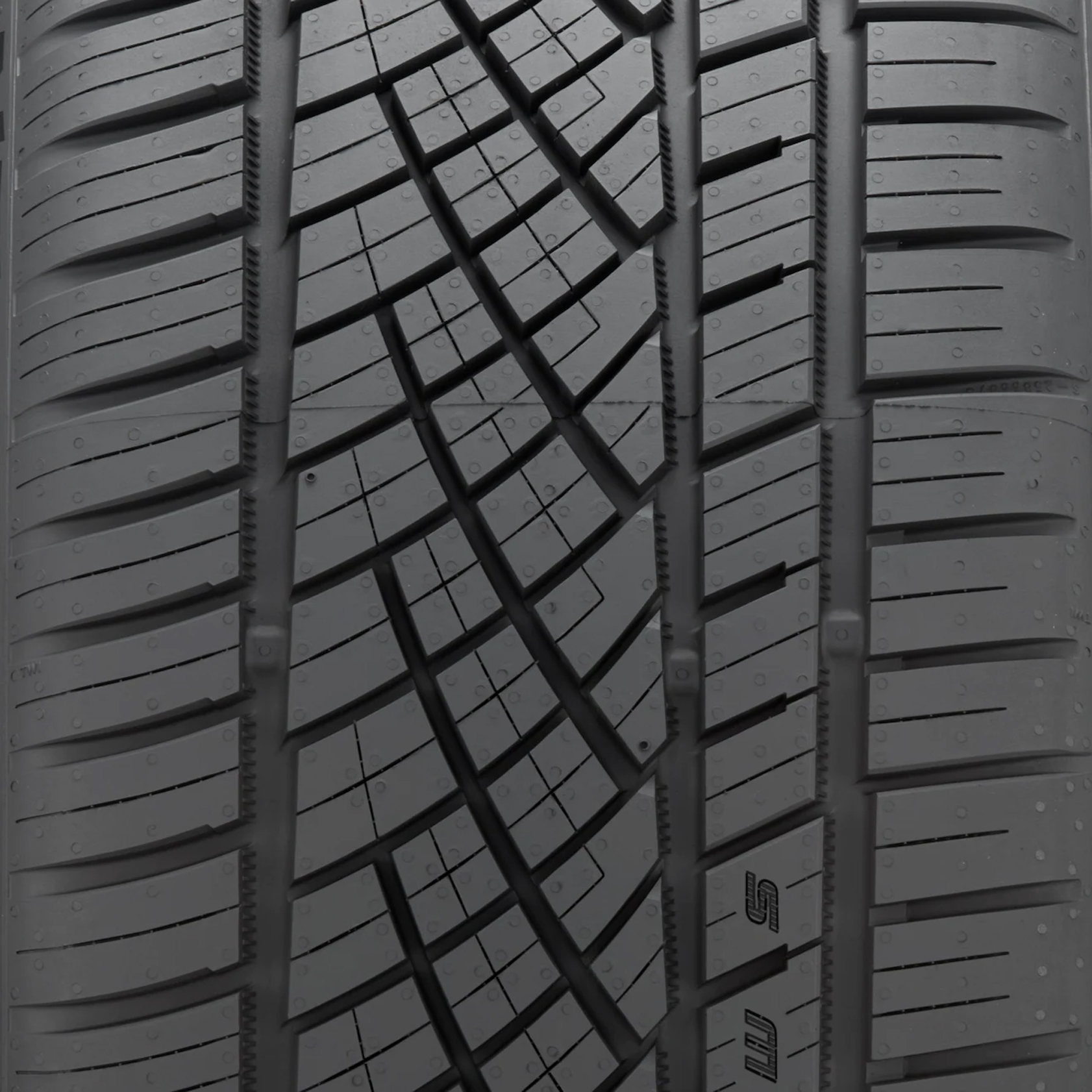 Le pneu d’été/quatre saisons Extreme Contact DWS-06 de Continental est la nouvelle génération du DWS conçu pour maximiser sa surface de contact sur la route. Il est tout spécialement dédié aux conducteurs à la recherche d’adhérence extrême, peu importe les conditions routières. Il possède une technologie unique de bords chanfreinés pour des performances accrues sur sol sec, offrant une plus grande adhérence lors de l’accélération, une meilleure maniabilité et une performance de freinage supérieure à celle de ses concurrents. Fait intéressant, des indicateurs de performance vous informent sur le niveau de performance des pneus par temps sec, humide et neige. DWS indique que le pneu est réglé pour une performance optimale (D pour sec, W pour mouillé, S pour neige). Donc, lorsque les indicateurs disparaissent, le pneu n’est plus réglé pour des performances optimales dans ces conditions de route. Enfin, la technologie SportPlus augmente la durée de vie de la bande de roulement, tout en améliorant l’adhérence sur les chaussées mouillées et fournit une direction précise pour un contrôle maximal.