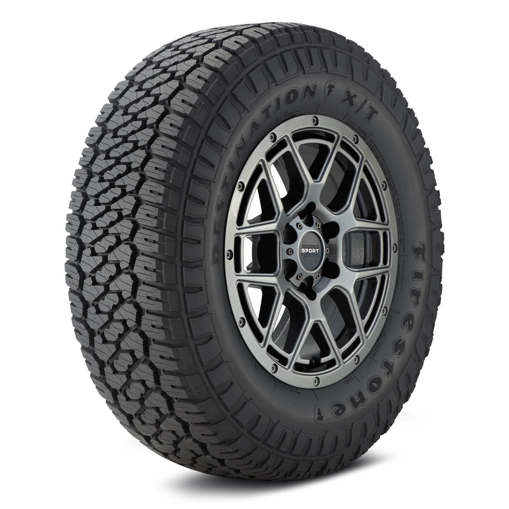 Le Destination X/T de Firestone est le tout nouveau pneu d’aventure de Firestone. Un pneu 4 saisons homologué hiver destiné aux VUS et camionnettes, offrant une traction hors route fiable, une robustesse durable et de la performance autant sur, que hors route. Il est bien adapté, tout comme les autres modèles de la famille Destination, pour faire face à tous les types de surfaces (sèches, mouillées, gravier, boue, roches, etc.). La conception agressive de la bande de roulement offre des bords mordants supplémentaires pour des performances hors route. La technologie des lamelles 3D imbriquées de pleine profondeur aident à fournir une usure uniforme et des performances constantes. Les fentes d’épaule ouvertes quant à elles, procurent une traction hors route et évacuent efficacement l’eau aidant ainsi à réduire le risque d’aquaplanage. Le Destination X/T est aussi très confortable, offrant une tenue de route remarquable et un faible niveau sonore. En bref, le Destination X/T de Firestone vous offrira une traction et une durabilité éprouvées sur lesquelles vous pouvez compter et ce, n’importe où. Le symbole de la montage et du flocon embossé dans le flanc du pneu vous permet de rouler à l’année, en toute légalité.