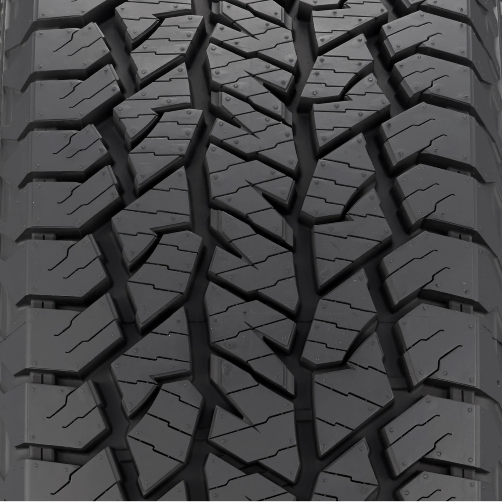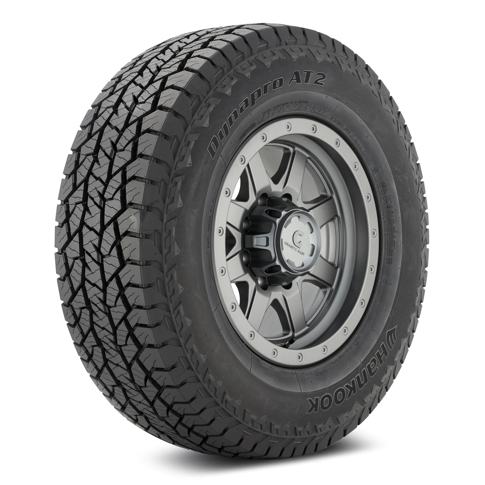 ’’Le Dynapro AT2 RF11 est le pneu tout terrain 4 saisons homologué hiver de Hankook, développé spécialement pour les conducteurs de camionnettes, Jeeps, fourgonnettes commerciales et gros VUS recherchant des performances équilibrées. Il offre durabilité et polyvalence dans une multitude de conditions routières et de terrains, associant prouesses hors route et traction sur chaussées sèches, mouillées et enneigées. Le composé de gomme a été formulé pour améliorer l’économie de carburant et offrir une résistance aux lacérations et aux perforations en terrains accidentés. Des barres de fixation rigides aux épaulements stabilisent les pavés, améliorant le confort et la tenue de route sur chaussée sèche, tandis que les rebords réduisent les bruits émanants du motif asymétrique. Le composé à base de silice améliore l’adhérence sur chaussée mouillée, tandis que les épaulements ouverts et les larges rainures facilitent l’évacuation de l’eau pour résister davantage à l’aquaplanage. Les rainures et les lamelles multidirectionnelles sont agencées de manière à procurer de la traction, tandis que les pavés indépendants présentent des arêtes au mordant accru, pour une adhérence hors route et dans la neige.  ’’