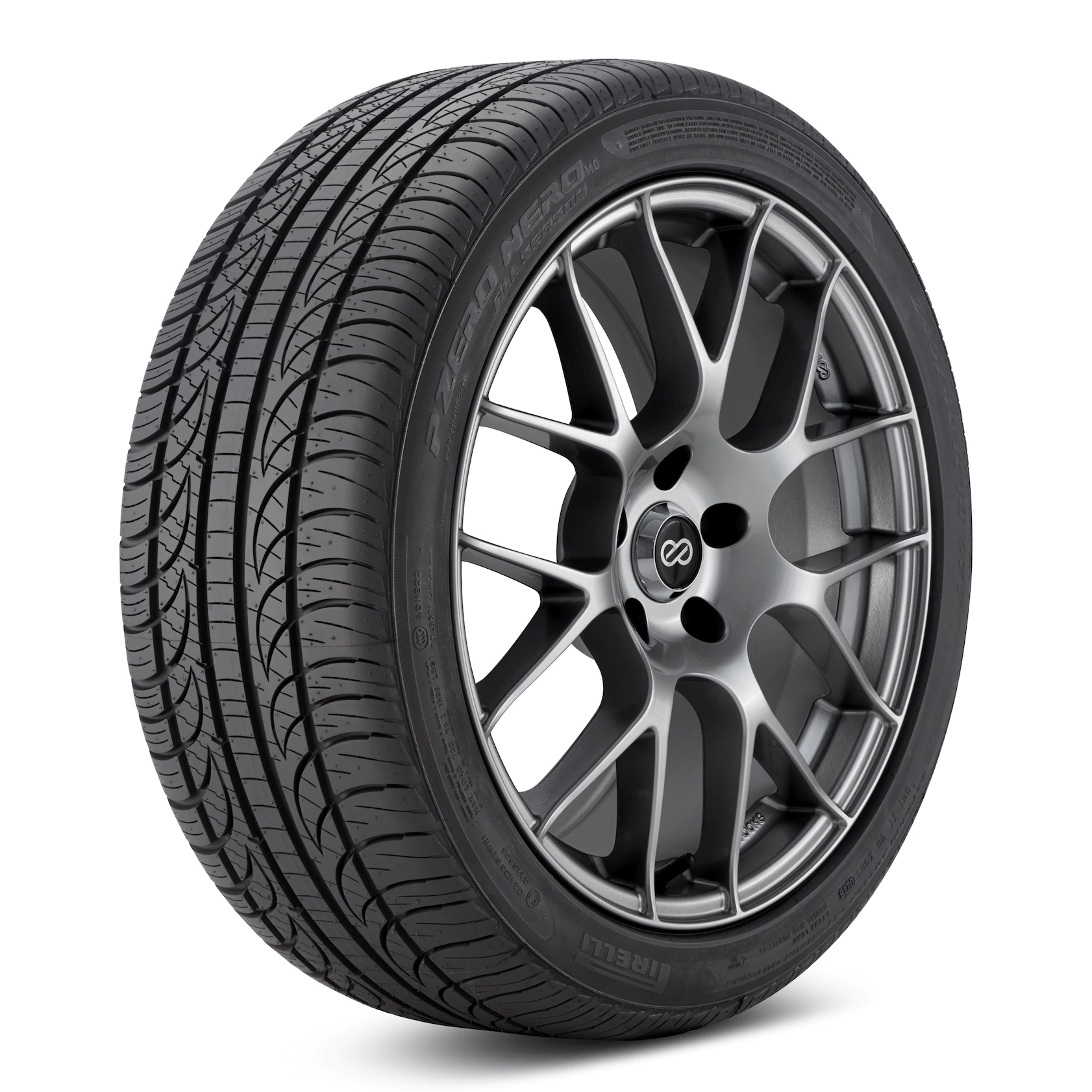 Le pneu d’été/4 saisons P Zero Nero All Season de Pirelli en est un d’ultra haute performance, conçu pour offrir une traction et une maniabilité toutes saisons. Il a été développé pour s’adapter aux diverses conditions météo, y compris par faible neige. Le composé de gomme renforcé à la silice procure une traction lors de températures élevées par temps sec et de basses températures par temps humide ou encore de neige légère. Ce composé est moulé dans une conception de bande de roulement asymétrique qui se caractérise par des blocs d’épaulement extérieurs stables combinés à des nervures intermédiaires et centrales continues qui augmentent la rigidité de l’empreinte pour améliorer l’adhérence sur sol sec lors des accélérations et des freinages. Les rainures des épaules et les canaux circonférentiels permettent à l’eau de s’écouler à travers la conception de la bande de roulement pour résister à l’aquaplanage et améliorer la traction sur sol mouillé.