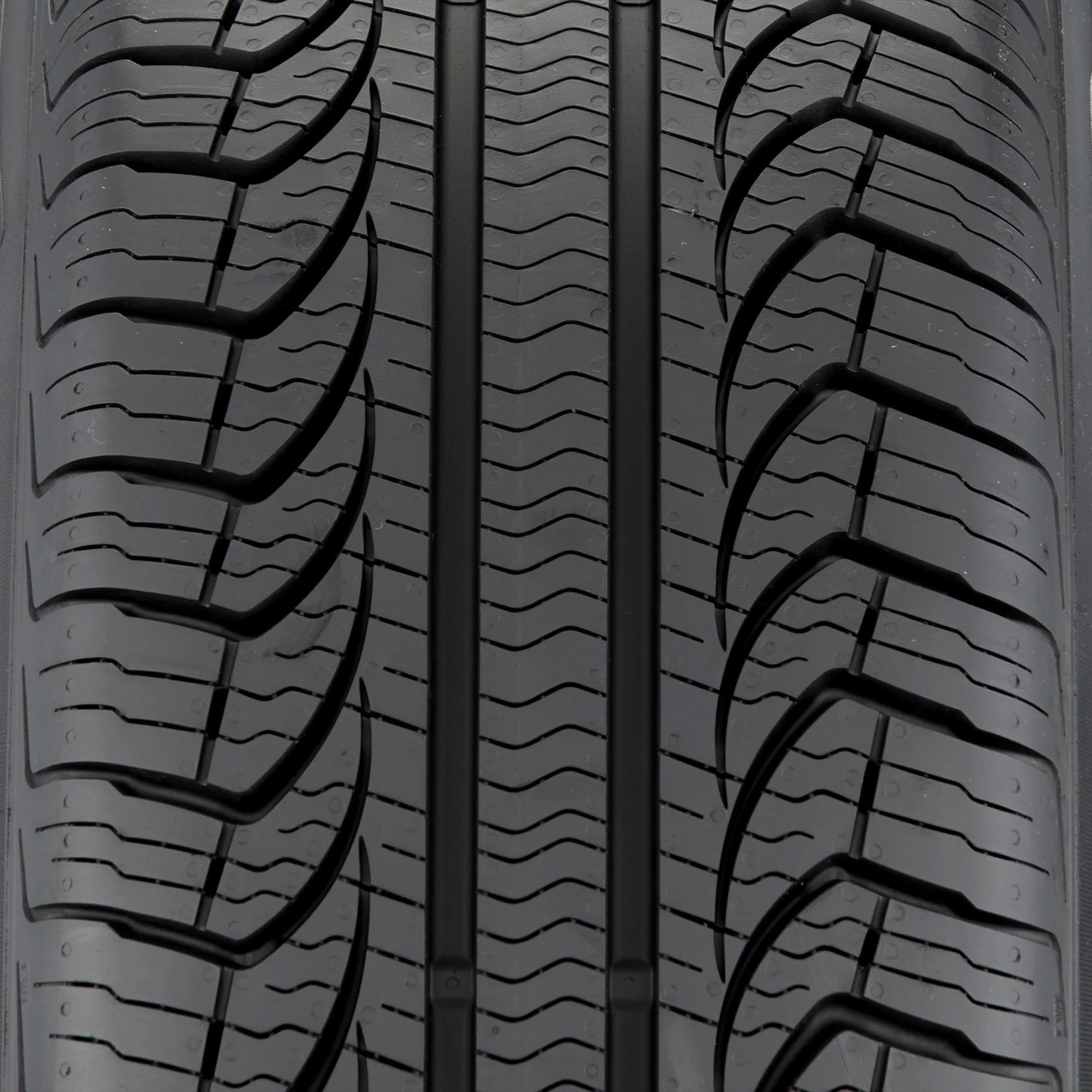 Le pneu d’été/4 saisons P4 Four Seasons Plus de Pirelli combine durabilité et performance, tout en offrant une économie sur l’essence. Il offre une conduite confortable et sécuritaire, peu importe les conditions météo. Il a été développé pour les conducteurs de coupés, de berlines et de mini-fourgonnettes. Conçu pour aider à réduire l’impact environnemental, le P4 Four Seasons Plus associe confort de conduite, faible bruit et résistance au roulement réduite, longue durée de vie et traction 4 saisons sur routes sèches, mouillées. Le composé de la bande de roulement riche en silice est rendu possible par l’utilisation de matériaux et de procédés de traitement innovants, afin de réduire la résistance au roulement tout en améliorant la traction par mauvais temps. Le motif symétrique comprend une nervure centrale continue, des pavés et des épaulement indépendants utilisant une lamelle conçue par ordinateur pour combiner maniabilité sur le route sèche et traction sur route mouillée. 2 rainures circonférentielles centrales et de nombreuses rainures latérales à angle variable facilitent l’évacuation de l’eau afin de réduire les risques d’aquaplanage.